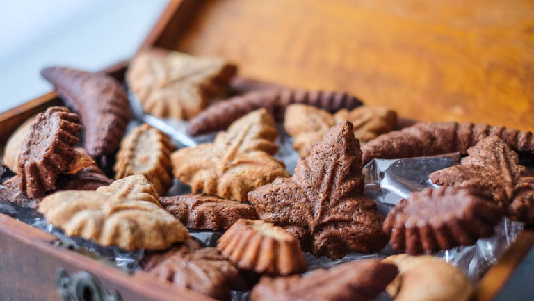 Předehřejeme si troubu na 180 stupňů a nakrájíme si datle na menší kousky. Strouhaný kokos, vlašské ořechy, mandle a tapiokový škrob si důkladně rozmixujeme. K rozmixované sušší směsi rozklepeme vejce, přidáme datle na kousky, perníkové koření, kakao a znovu mixujeme dokud se nevytvoří těsto. Ze vzniklého těsta si vymodelujeme kuličky a natlačíme je dovnitř formiček tak, aby byly zarovnané s hranou. Formičky dáme na plech a pečeme asi 7 minut při teplotě 180 stupňů.